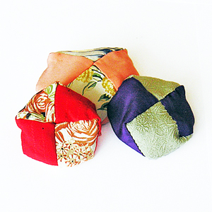 日本のお手玉の型紙は長方形が四枚。着物の残り生地でつくります。